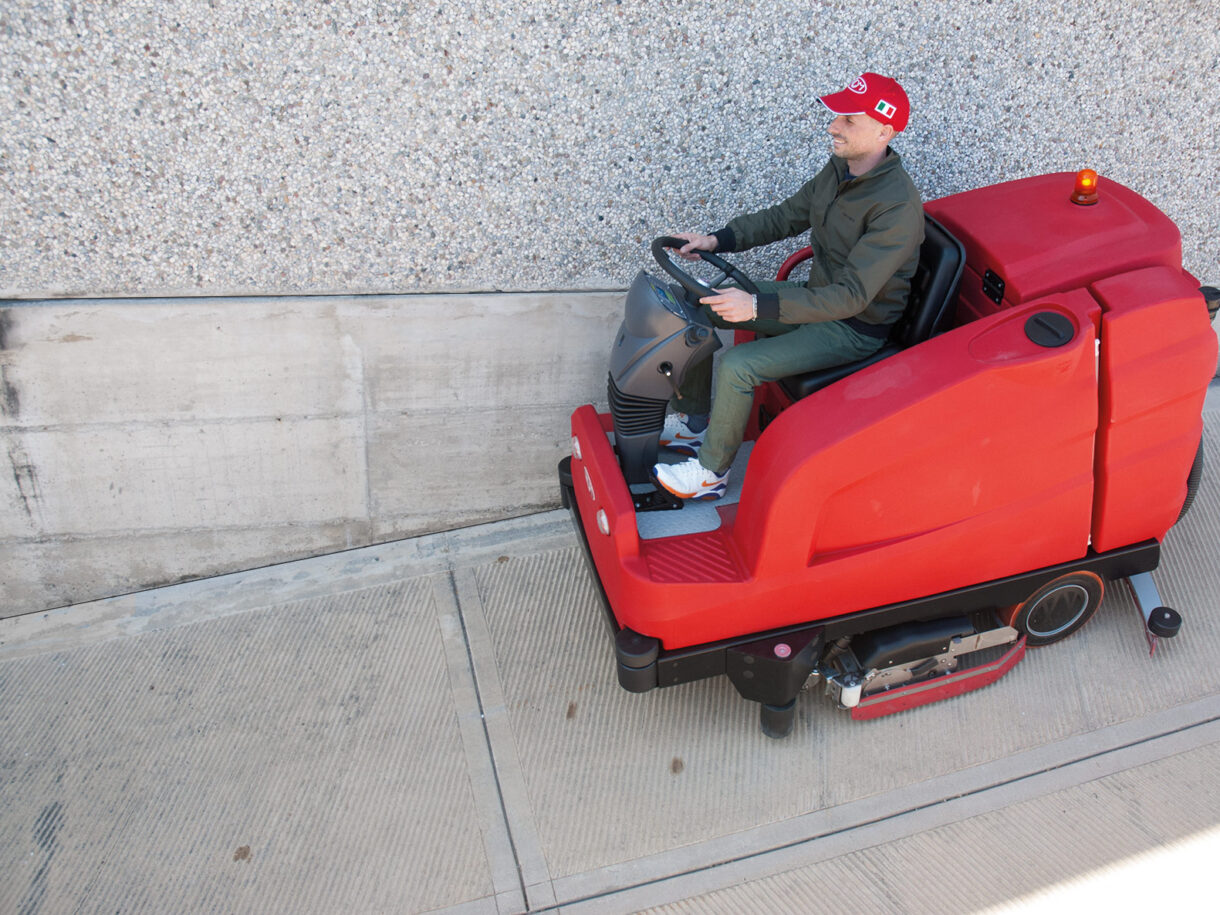Szorowarka z funkcją suszarki (i zamiatarki GIGA 702 R), posiada możliwość czyszczenia na stromych wzniesieniach