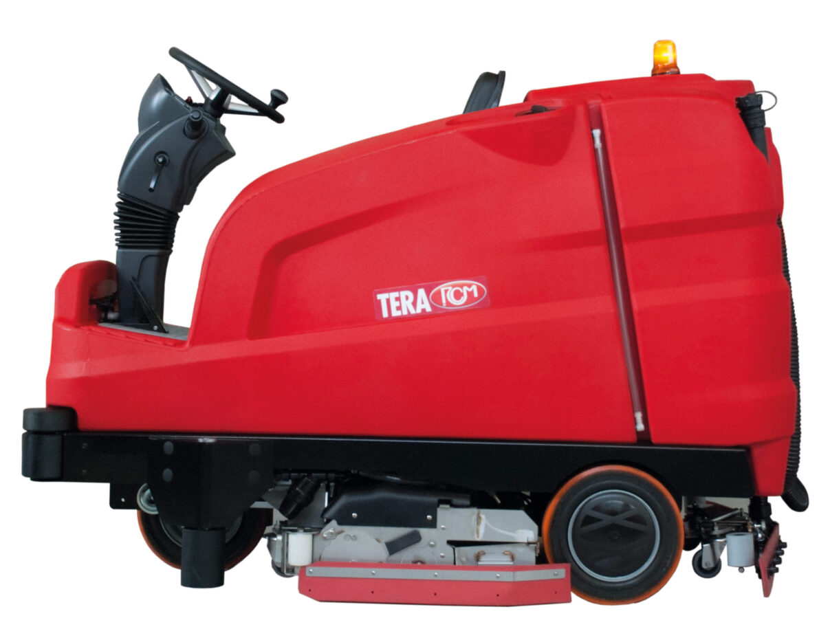 TERA to szorowarka do dużych powierzchni. Jest przyjazna dla środowiska i pozwala na ustawienie niestandardowych programów pracy. Trzy możliwe wersje: szerokość czyszczenia od 1100 do 1300 mm za pomocą szczotek talerzowych lub walcowych. Zbiornik na wodę o pojemności 280 litrów i akumulator 36 V-525 Ah zapewniają dużą autonomię pracy. Duże koła i solidna konstrukcja sprawiają, że maszyna jest w stanie pracować w najcięższych warunkach. Opcjonalne urządzenie zamiatające pozwala zamiatać drobne śmieci i jednocześnie doskonale je czyścić.